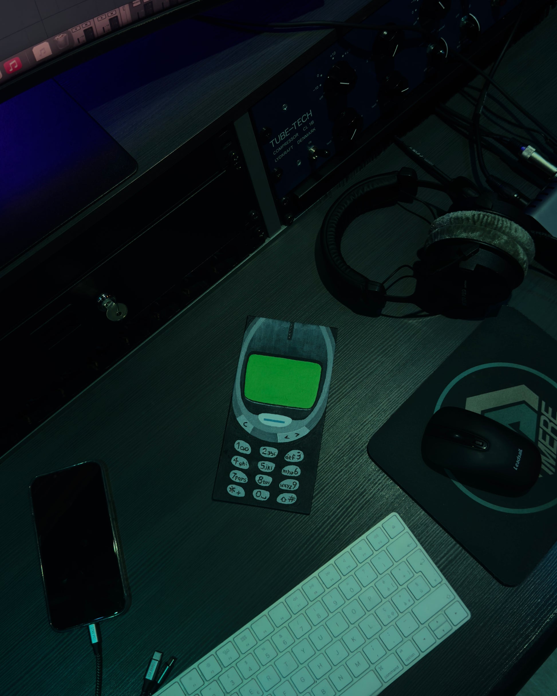 Mini quadro tagliato a mano che prende la forma di un telefono: il leggendario Nokia 3310, icona senza tempo della nostra generazione.