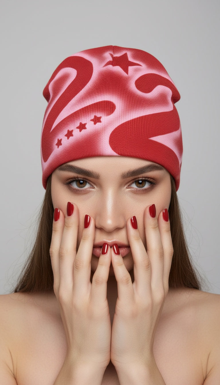 Each beanie is airbrushed by hand, making each piece unique.